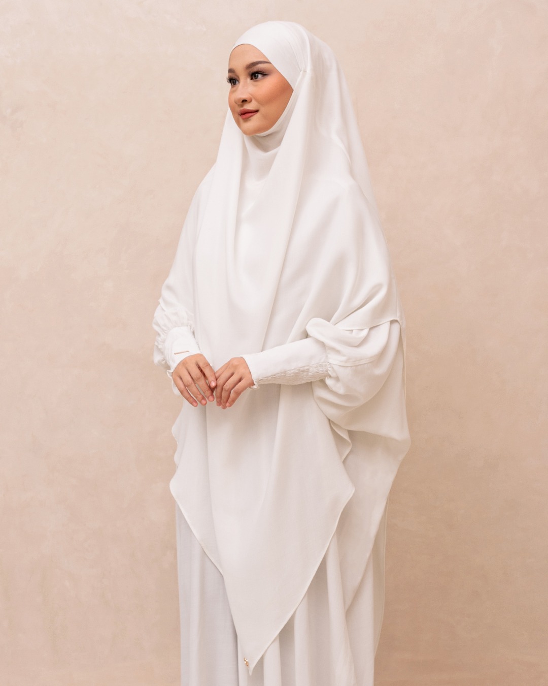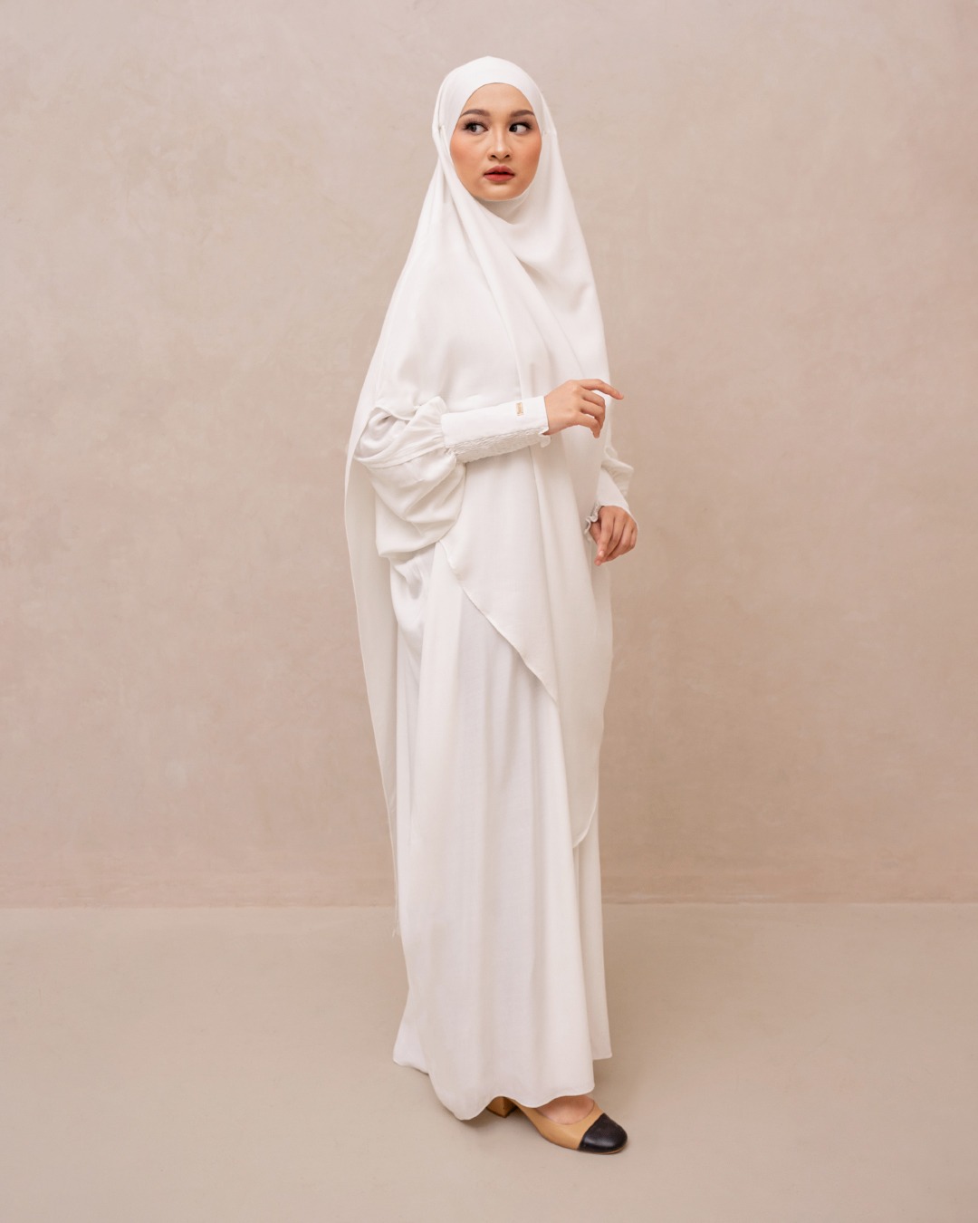 ONE SET ABAYA ALUNA & KHIMAR HILYA - OFF WHITE