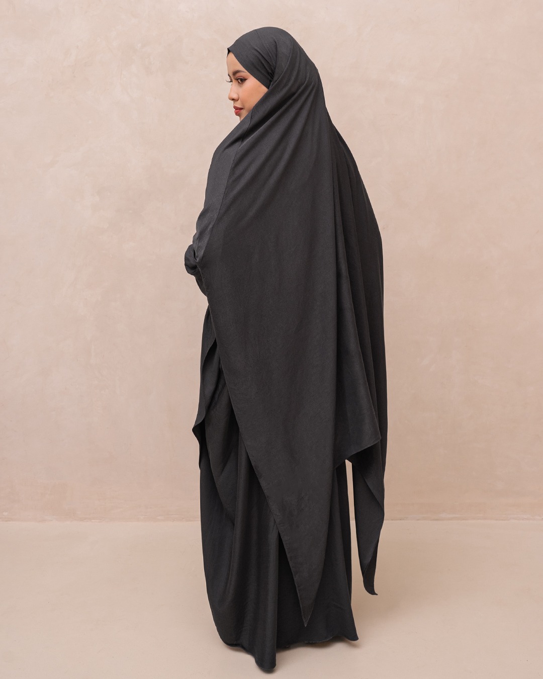 ONE SET ABAYA ALUNA & KHIMAR HILYA - DARK GREY