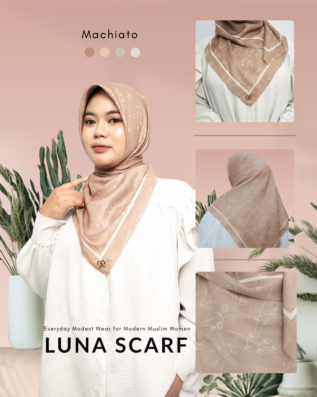 Luna Scarf warna Machiato menghadirkan nuansa earthy yang lembut dengan sentuhan feminin yang modern. Dihiasi motif floral tipis yang menyatu halus dengan warna dasar, desain ini menciptakan tampilan yang manis, tenang, dan refined tanpa terlihat berlebihan. Tone cokelat Machiato yang hangat membuatnya mudah dipadukan dengan berbagai outfit, mulai dari daily modest look, office wear, hingga tampilan semi-formal yang elegan. Motifnya yang subtle memberi dimensi visual yang cantik sehingga scarf tetap terlihat hidup dan berkarakter saat dipakai.